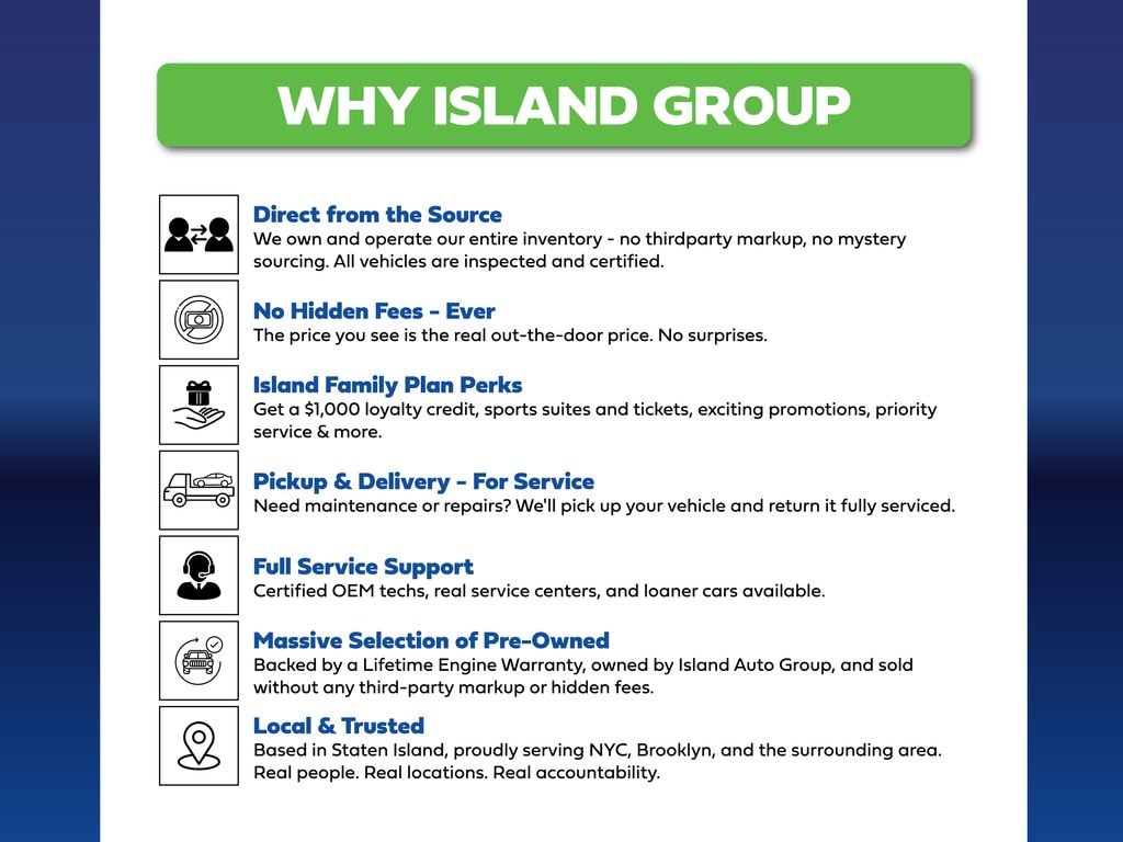 Island Auto Group â" No Hidden Fees, No Games, Just Real Prices! What You See is What You Pay â" No "Extra" Dealer Fees Ever! Most dealers advertise fake prices with hidden feesâ"ours are real! Direct Dealer Pricing â" No Middlemen, No Markups Lifetime Engine Warranty on Pre-Owned Vehicles Exclusive Island Family Rewards â" Earn Points, Get Perks Priority Service & Loaner Cars for Island Customers Visit IslandAutoGroup.com or watch our videos to see why buying with Island is the best choice for your family!