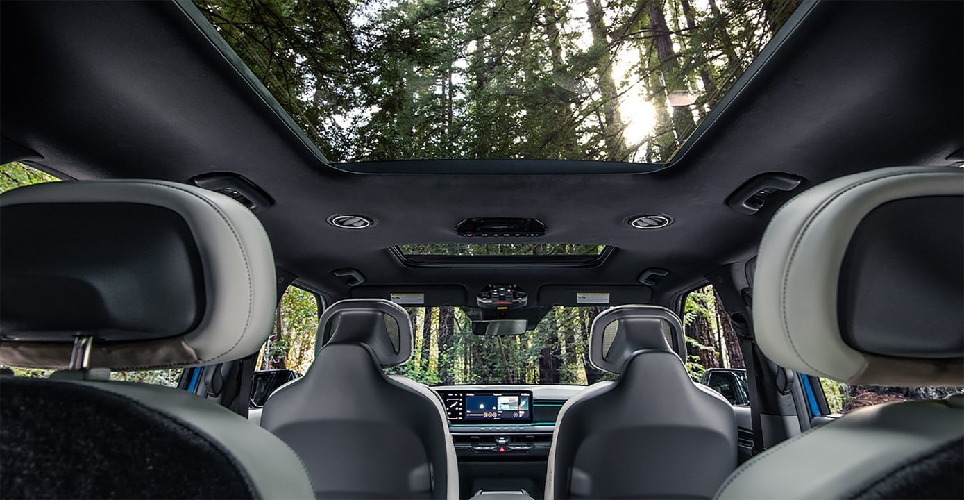 Furthermore, the EV9's cargo space is equally impressive, with a generous amount of room for luggage, gear, and more. Additionally, the panoramic sunroof invites natural light into the cabin, enhancing the overall sense of openness and making sunset drives around Bayonne even more beautiful.